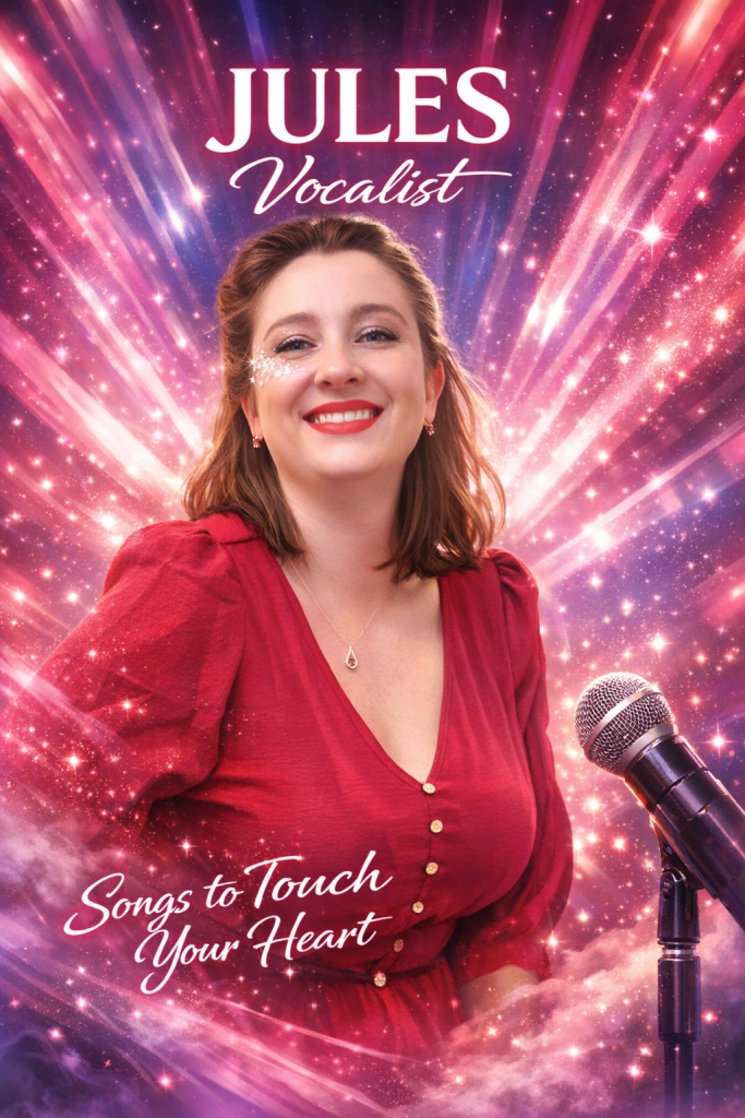 Jules has been singing since the age of four. Performing has always been the dream — a lifelong love rooted in being on stage and connecting with people through music. For Jules, singing is about sharing joy, creating moments, and bringing music into people’s lives.